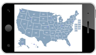 Our professionally-designed dynamic map has all the features you need for your web site or project. This is the ideal solution for dealer maps, branch locators, real-estate listings, or visualizing state statistics.